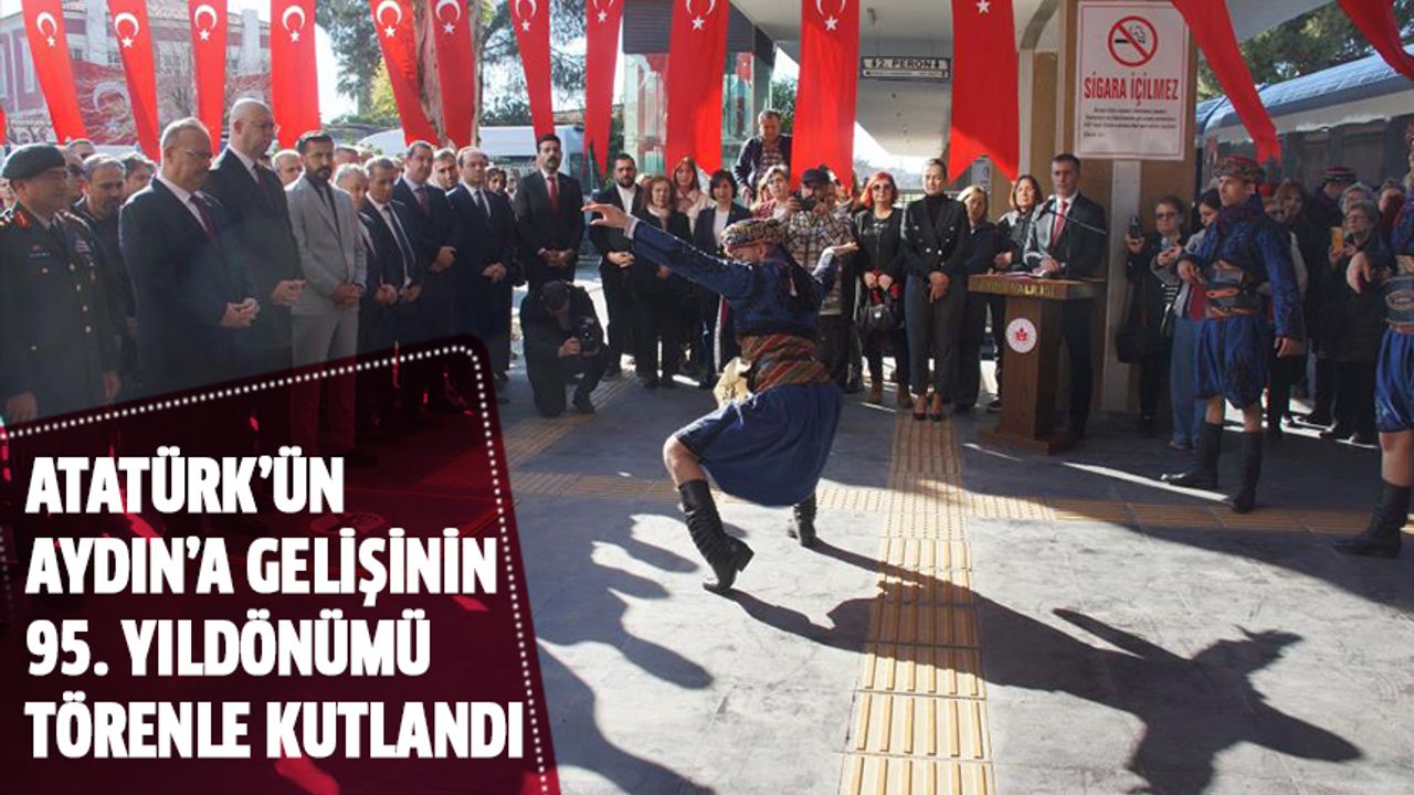 Aydın Valiliği önünde düzenlenen tören Aydın Tren Garı’nda devam etti. Atatürk’ün Aydın’a gelişinin simgesi olarak süslenen tren, Aydın Tren Garı’na yanaştı. Trenin içinden inen Aydın’ın yöresel kıyafetlerini giymiş öğrenciler, Aydın Valisi Yakup Canbolat’a Türk bayrağı ve çiçek takdim etti. Daha sonra halk oyunları ekibi tarafından folklor gösterisi sergilendi.
