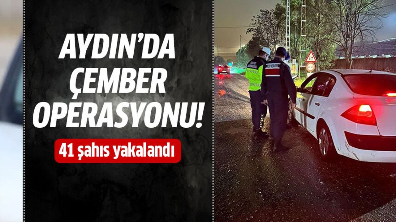 Aydın İl Jandarma Komutanlığı tarafından 19-21 Şubat 2026 günleri arasında aranan şahısların yakalanmasına yönelik eş zamanlı olarak "Çember-113" operasyonu gerçekleştirildi. 82 unsur ve 246 personelin katılımıyla yapılan çalışmalarda 10’u 0-2 yıl, 10’u 2-5 yıl, 3’ü 5-10 yıl arası hapis cezası ile aranan şahıslar olmak üzere toplam 41 aranan şahıs yakalandı. Ayrıca yakalanan şahıslar arasında 3 uyuşturucu, 3 hırsızlık, 3 dolandırıcılık, 2 kasten yaralama, 1 Türk vatandaşı veya yabancının yurt dışına çıkmasına imkan sağlama, 1 tehdit, 10 diğer suçlardan, 18 ifadeye yönelik aranma kaydı bulunan şahıslar yer aldı. Aydın İl Jandarma Komutanlığı’ndan yapılan açıklamada "Suç ve suçlularla mücadele kapsamında yürütülen çalışmalar kararlılıkla devam ediyor" ifadeleri yer aldı.
