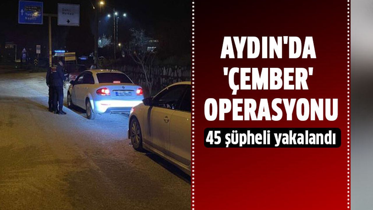 Aydın İl Jandarma Komutanlığı tarafından aranan şahıslara yönelik eş zamanlı olarak 'Çember' operasyonu gerçekleştirildi. Edinilen bilgiye göre il genelinde 80 unsur ve 243 personelin katılımıyla icra edilen operasyon çerçevesinde, çeşitli suçlardan haklarında yakalama kararı bulunan şahısların izine ulaşıldı. Harekete geçen ekipler tarafından 13’ü 0-2 yıl, 8’i 2-5 yıl, 2’si 5-10 yıl arası kesinleşmiş hapis cezası, 22’si ise ifadeye yönelik arandığı tespit edilen toplam 45 aranan şahıs yakalandı. Yakalanan şahısların suç dağılımına bakıldığında ise 5’inin uyuşturucu, 3’ünün tehdit, 3’ünün hırsızlık, 1’inin silahla yağma, 1’inin cinsel istismar, 10’unun ise çeşitli diğer suçlardan arandığı tespit edildi. Yakalanarak gözaltına alınan şahıslar hakkında adli işlem başlatıldı.