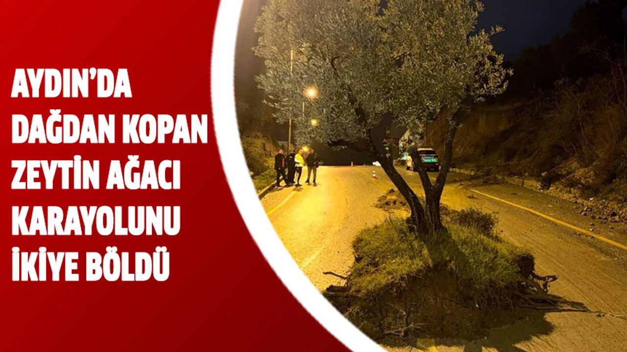 Meteoroloji’nin sağanak yağış ve fırtına uyarısının ardından Söke ilçesinde sağanak yağış dün gece saatlerine kadar etkili oldu. Sağanak yağışla birlikte yollar göle dönerken, köküyle birlikte yol ortasına sürüklenen zeytin ağacını görenler gözlerine inanamadı. Sel sularının dağdan kopardığı ve adeta ayaklanan zeytin ağacı sürüklenerek karayolunun ortasında durdu.
