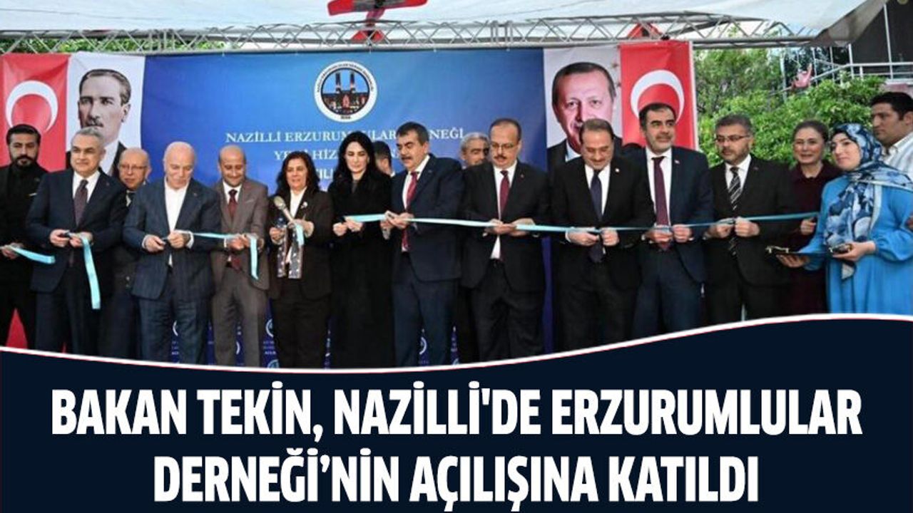 Bakan Tekin'in Aydın ziyaretlerinin son durağı olan Nazilli Erzurumlular Derneği hizmet binası açılışına Aydın Valisi Yakup Canbolat başta olmak üzere Nazilli Kaymakamı Huriye Küpeli Kan, AK Parti Aydın Milletvekilleri Mustafa Savaş, Seda Sarıbaş ve Ömer Özmen, Aydın Büyükşehir Belediye Başkanı Özlem Çerçioğlu ile Erzurum Büyükşehir Belediye Başkanı Mehmet Sekmen, AK Parti Aydın İl Başkanı Mehmet Erdem, AK Parti ve MHP'li ilçe başkanları, Ege Erzurumlular Federasyonu Başkanı Zakir Salmaoğlu ile çok sayıda Erzurumlu katıldı.