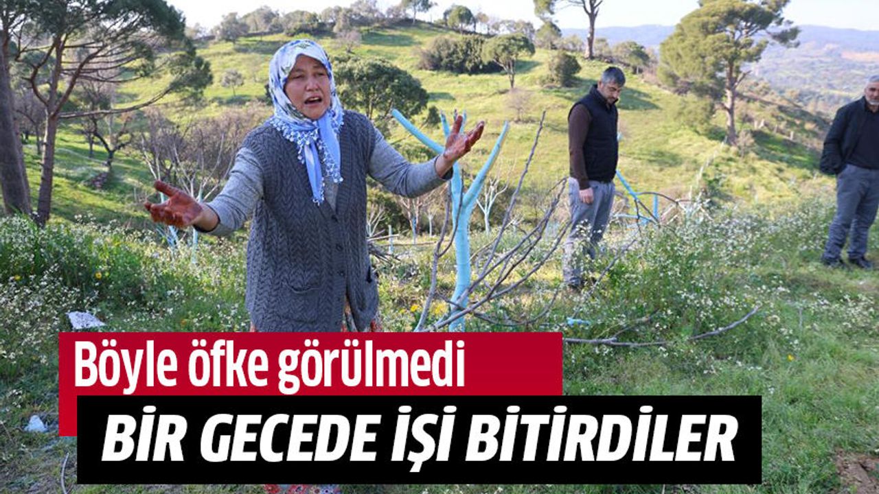 Bahçesindeki incir ağaçları kesilen Gülperi Aslan, ağaçları zorluklarla yetiştirdiklerini ifade ederek "Direği yıkarak içeriye girmiş. 47 tane incirmizi kesmişler. Kasıtlı olarak yapmışlar. Kimin yaptığını da bilmiyoruz. İnşallah cezasını çeker, bulunur. Benim çocuklarım bu ağaçları zorla yetiştirdiler. Suları zorla sırtlarında bidonlarla çektiler, suladılar. Ben sıcakta çalıştım. Benim çocuklarım kızıl sıcakta çalıştı. Öyle yaptılar bu bahçeyi. Yazıklar olsun. Bunu yapanlar insanlıktan nasibini almamış. Bunu yapanların kim olduğunu Allah bilir. Ben gözümle görmedim ama görseydim zaten öldürürdüm. Ya ben onu ya o beni öldürecek" şeklinde konuştu.
