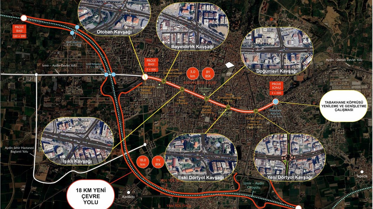 Yeni Dörtyol Köprülü Kavşağı, Eski Dörtyol Kavşağı, Kadın Doğum Hastanesi Kavşağı, Işıklı Yolu Kavşağı, Bayındırlık Kavşağı ve Eski Otoyol Gişeleri Kavşağı ile Efeler’e 18 kilometre uzunluğunda yeni kuzey güney doğrultulu çevre yolu yapılması ve Tabakhane Çayı üzerindeki köprünün genişletilerek yenilenmesini içeren dev projede ihale gerçekleştirildi.