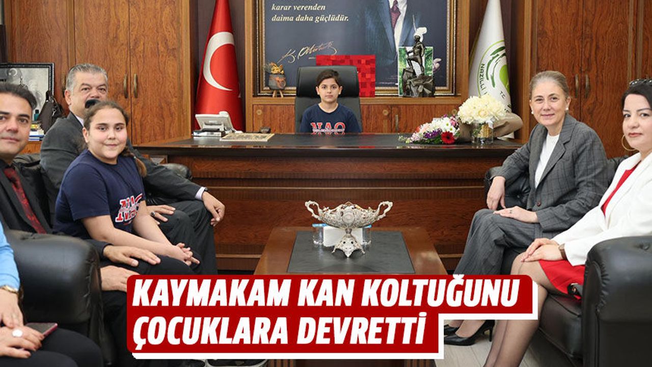 Nazilli Kaymakamı Huriye Küpeli Kan, kaymakamlık makamını temsili olarak Nazilli Atatürk Ortaokulu 5. sınıf öğrencileri Sinan Babacan ve Ayşe Sena Çulluca’ya devretti. Öğrenciler kısa süreliğine kaymakamlık koltuğuna oturarak duygu ve düşüncelerini paylaştı.