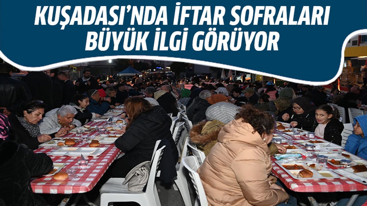 Cumhuriyet İlkokulu önünde verilen 1000 kişilik iftar yemeğinde bir araya gelen Kuşadalılar, okunan duaların ardından hep birlikte oruçlarını açtı. İftar yemeğine Kuşadası Belediye Başkan Vekili Çağlayan Erdem, Belediye Başkan Yardımcısı Seyfi Seyhan Suvari ile Ayşe