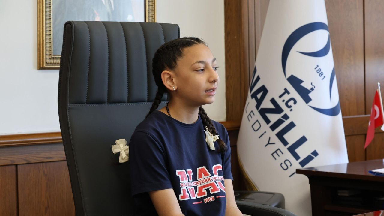 Nazilli Belediyesi’nde gerçekleştirilen programda, Nazilli Atatürk Ortaokulu öğrencileri Beste Can ve Muhammed Enes Kayacı başkanlık makamını devralarak büyük bir heyecan yaşadı.