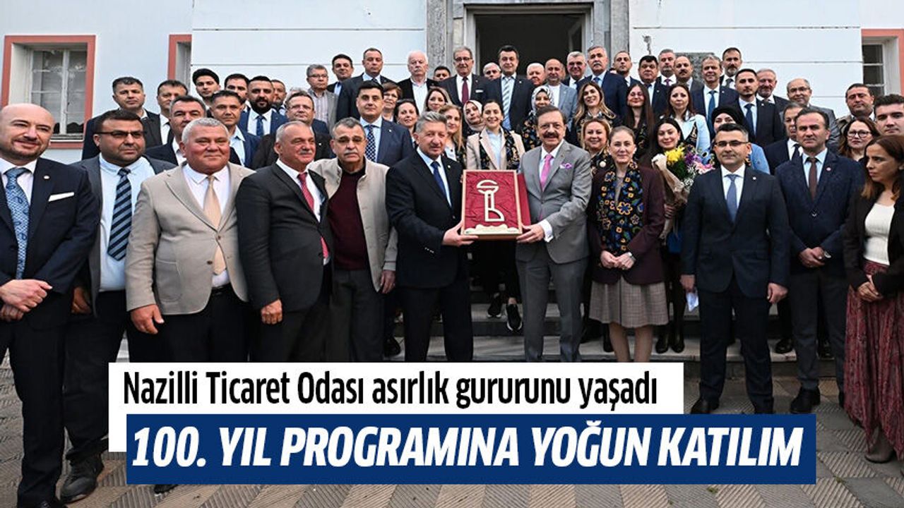 NTO Başkanı Nuri Arslan ise konuşmasında ilçenin yatırım ve üretim hedeflerine dikkat çekerek, “Bıkmadan, yılmadan en üst seviyede çalışıp üretmeye devam edeceğiz. 100. yılımızı birlikte kutlamanın sevincini yaşıyoruz. Odamızın kuruluşundan bugüne kadar emeği geçen herkesi minnetle anıyoruz. Daha nice yüzyıllarda büyüyen, gelişen, zenginleşen bir Nazilli umut ediyorum” dedi.