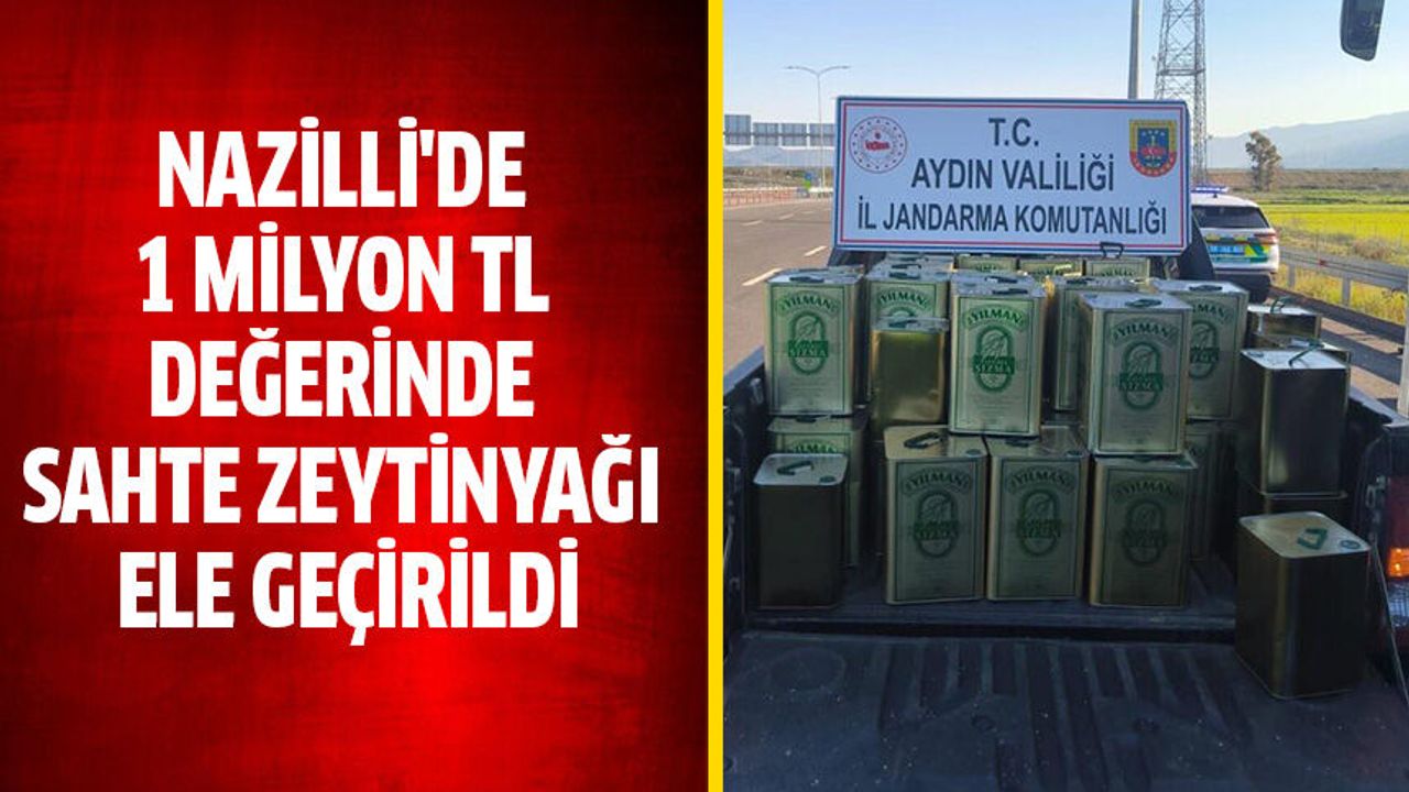 Edinilen bilgiye göre Aydın İl Jandarma Komutanlığı KOM Şube Müdürlüğü ekiplerince Nazilli ilçesi otoyol gişelerinde şüpheli hareketler sergileyen bir araç durduruldu. Araçta yapılan aramada piyasaya sürülmek üzere taşındığı değerlendirilen 942 litre taklit zeytinyağı ele geçirildi. Ele geçirilen ürünlerin piyasa değerinin yaklaşık 1 milyon 450 bin TL olduğu belirlenirken, olayla ilgili 2 şüpheli yakalanarak gözaltına alındı. Şüpheliler haklarında adli ve idari işlemler başlatıldı.