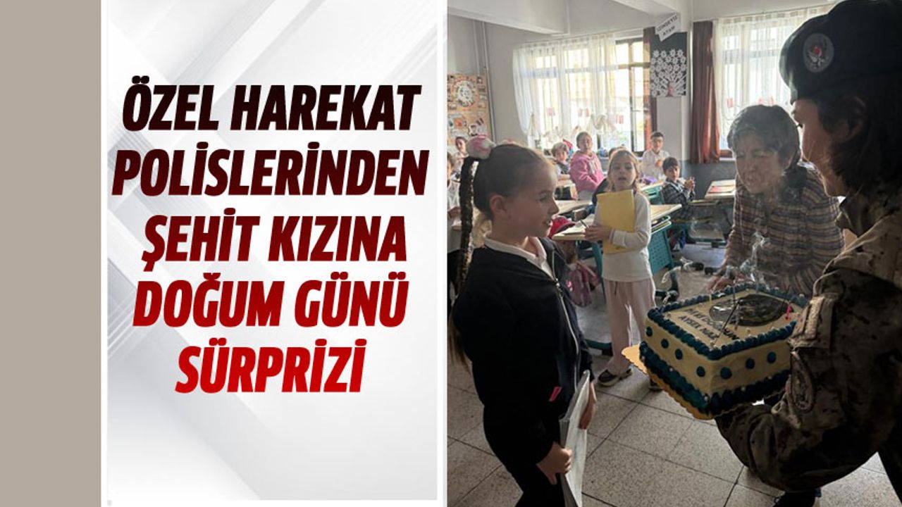 İlkokul ikinci sınıfa giden Aygün'ün sınıfına giden Özel Harekat polisleri, sınıfa pasta ile girerek küzük kıza hediyeler verdi. Duygusal anların yaşandığı kutlamada, minik Aysel Naz'ın mutluluğu yüzüne yansıdı.