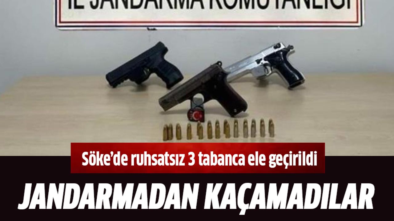 Aydın İl Jandarma Komutanlığı Söke İlçe Jandarma Komutanlığı ekipleri tarafından, silah ticaretine yönelik yürütülen çalışmalar kapsamında Atburgazı Mahallesi’nde operasyon düzenlendi. Yapılan aramada, Y.S. (47) isimli şahsa ait evde 3 adet ruhsatsız tabanca (1’i çalıntı), 9 adet 9 mm çapında tabanca fişeği ele geçirildi. Şüpheli şahıs adli makamlara sevk edilmek üzere gözaltına alındı.