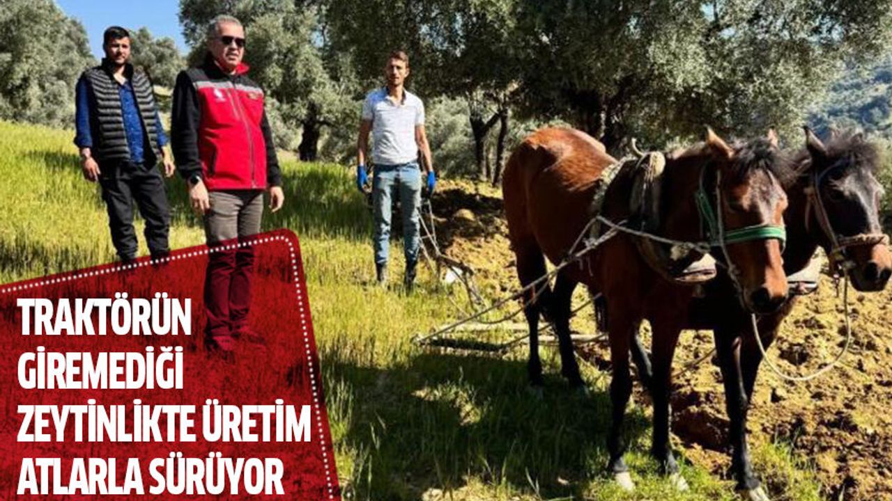 Traktörün giremediği zeytinlikte üretim atlarla sürüyor