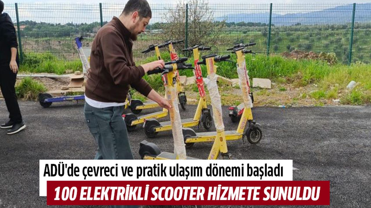 Aydın Adnan Menderes Üniversitesi (ADÜ) Merkez Kampüsü’nde öğrencilerin kampüs içi ulaşımını daha hızlı, pratik ve çevreci hale getirmek amacıyla elektrikli scooter uygulaması başlatıldı. Hayata geçirilen proje kapsamında kampüs genelinde 100 scooter öğrencilerin kullanımına sunuldu. Dakika başına 5,99 TL ücretlendirilen hizmetten yararlanabilmek için ilgili mobil uygulamanın indirilmesi ve kredi kartı tanımlanması gerekiyor.