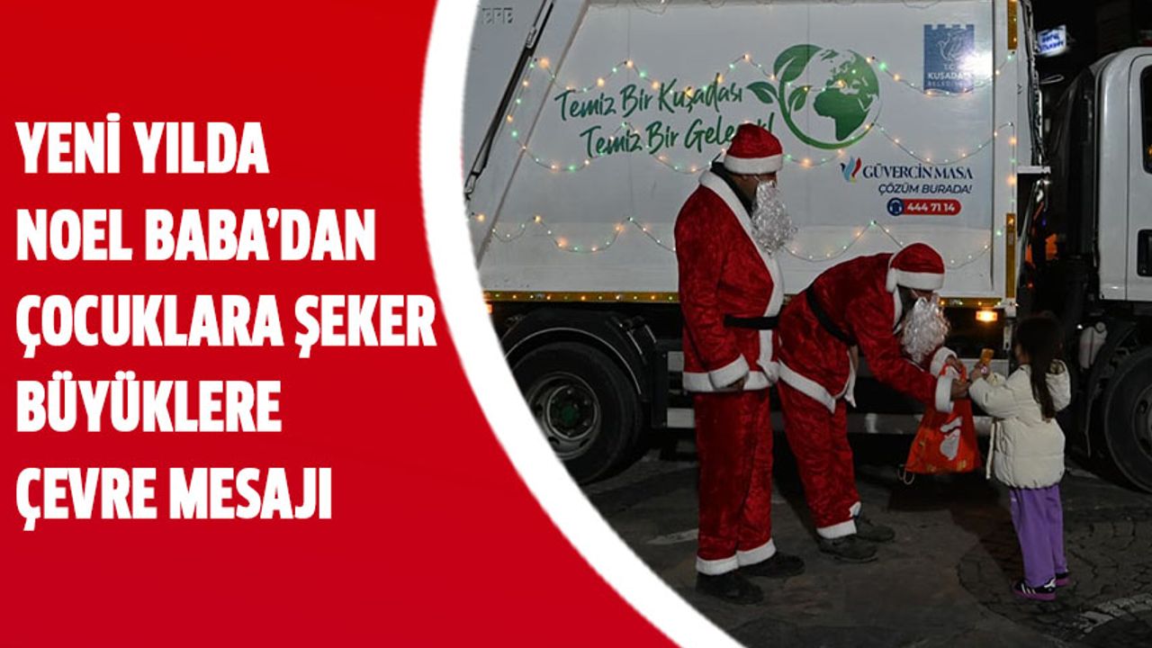 Işıklarla süslenen kamyonlardan inen Noel Baba kostümlü belediye personeli, çocuklara ve yetişkinlere şeker ikram etti. Etkinlik kapsamında çevrenin temiz tutulması için yapılması gerekenler anlatılırken, doğanın korunmasının önemi vurgulandı. Hem kent sakinlerinin hem de Kuşadası’nı ziyaret eden yerli ve yabancı turistlerin yoğun ilgisiyle karşılanan etkinlik, yeni yıl atmosferine çevreci bir anlam kattı.